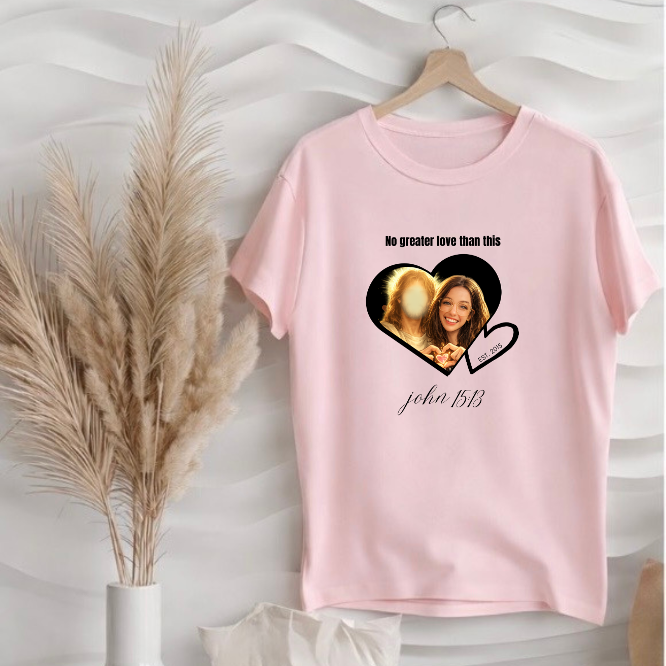 Please upload a clear photo of the coulple (faces visible, well-lit). Then, enter both names exactly as you want them printed. Pay attention to spelling. I will take care of capitalization. Example: Chris (heart) Michelle, EST. 1991. Your portrait will be created from the photo you provide. The cartoon image will be sililar to the one you provided, but not exact.